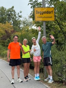 Am gestrigen Mitwoch, den 10. September kam die Extrem-Marathon-Läuferin Joyce Hübner zu Ihrem 102. Städtetrip-Marathon zu uns in den Landkreis Deggendorf. Seitens TSV Plattling beteiligten sich Markus Hrda, Holger Dausch, Christian Hamperl und Markus Schwarz an dieser Aktion. Des Weiteren waren starke Abordnungen des Deggendorf Rudervereins und des LV Deggendorf am Start. Ab Plattling bis Fischerdorf lief auch unser Landrat Bernd Sibler mit Joyce Hübner mit und zwischen VP 4 (Verpflegungspunkt 4) bzw. Abzweigung Gut Altholz bis zum Deggendorfer Brauhaus liefen auch der Deggendorfer Oberbürgermeister Dr. Christian Moser und die 3. Bürgermeisterin Renate Wasmeier mit. An diesem VP wurde auch die Halbmarathon-Distanz erreicht und insgesamt 6 junge Damen konnten hier ihren ersten gelaufenen Halbmarathon feiern.